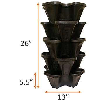 Mr. Stacky Pots Indoor gardening has been working out for me recently, and I really like this vertical garden for my herbs. I have been sprouting them in my hydroponic setup, and transfer them over when they are of a moderate size and strong. Depending upon how things turn out, I am planning to have herbs in three of these tiers and in the other two I will put some tomato and tomatillo plants that have sprouted. I am not really certain yet if I will put all five tiers together, or have a 3-tier and a 2-tier. Then, if these things turn out well, I will be sprouting greens and cucumbers to transfer over. Who knows? Maybe more tiers will be needed!Why four stars? Only the tiers come, which is clearly shown in the photo, but the instruction sheet clearly stated to put the first tier on the base then build it up from there. No base comes. You must go to a garden store or supermarket to get one; without it the runoff would leak all over the place. I was blessed that the garden store only had two sizes, 6" and 14", because after carefully measuring the 9-10" base of the tier I would have purchased one too small. The 14" base was perfect. It would have been much better for them to either state that the buyer must go get their own base, as well as the best size to buy; or to tack on a few more dollars and include one.