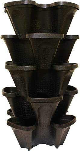 Best Gardening & Lawn Care 2020 ✔ Large 5 Tier Vertical Garden Tower - 5 Black Stackable Indoor / Outdoor Hydroponic and Aquaponic Planters (24 Quart Tower - 13x13x26).