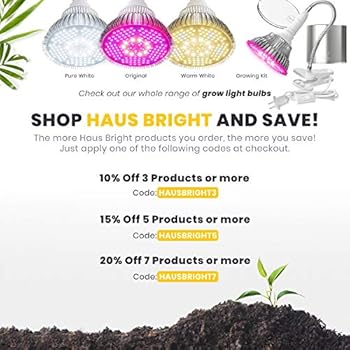 Haus Bright Indoor Gardening & Hydroponics These are some excellent cheaper alternatives to the more expensive LED grow lights on the market. While they don't put off as much light per unit, they're inexpensive enough to buy multiples and more than make up the difference, plus doing so helps to better shower your plants with light from different angles. Build quality seems to be great and I love the aluminum heat sinks machined right into the housing. These LED bulbs produce very little heat compared to the lower 60w equivalents I have from Feit while producing much more light, although the Feits were roughly half the cost. They say these are ~100w equivalents but I tend to think they perform better than that. I use 2 of these hooked to a basic analog timer under either end of the top shelf of those "cheap" plastic shelving units from Meijer. I have them pointed at a cannibus plant that went into flower stage after installing these bulbs and switching to a 12.5 on/11.5 off schedule. The plant is responding very well after almost 2 weeks. One of my green bean plants that gets some of the indirect light from these is starting to flower even. I have to believe, with as finicky as cannibus plants are with light, that these bulbs will work well for any plant. I was contacted by the seller almost immediately after delivery notification requesting feedback and any questions so I told them basically what I'm writing here, that I would definitely be interested in buying more and asked if they offer any bulbs in a daylight spectrum which to my disappointment they currently do not. They did say they were looking into it so I will be keeping my eye out. I'd love some daylights for seedlings and such and would appreciate buying from only one seller, especially since they have some pretty great customer service. If you're looking for an inexpensive, screw in style grow light for indoor plants I would highly recommend buying one or more of these.