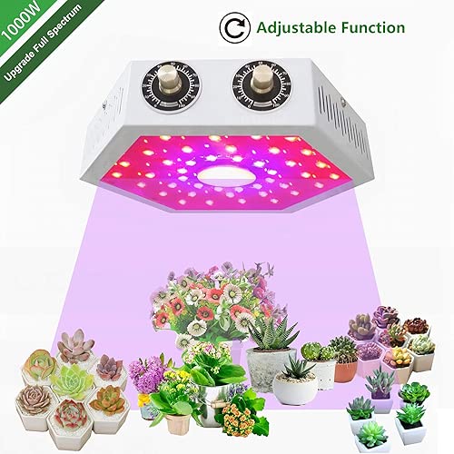 DBL Indoor Gardening & Hydroponics Im trying to get some of my outdoor plants started and ready to plant in the spring now during this cold winter season. This grow light is making it possible for me to grow indoors out of season. It is a very bright 1000w light with 42 LED lights . It measures 11.7" X 9.8" X 2.8 inches and weighs 3.1 lbs. It has 2 adjustable knobs on the side to adjust the brightness and color spectrum (red, blue, white, warm white, warm yellow, infrared, ultraviolet) depending on if you are in the seeding, growing or blooming stage. It comes with 3 wires that can clip for easy hanging . It works well hung about 16"s from your plants.I love LED lights for their overall low energy consumption and long lifespan. Im really impressed with this one and all the color spectrum and brightness adjustments that can be made on it.